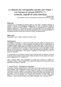 La réforme de l’orthographe est-elle une utopie : les travaux du groupe Érofa. Annie Desnoyers, Danièle Cogis, Emmanuel Fruchard (2025).